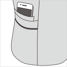 右ポケットの内側に、スマホを収納するスペースも。出し入れしやすく、シルエットを崩さない配慮です。(サイズによっては収納不可)