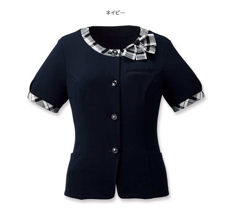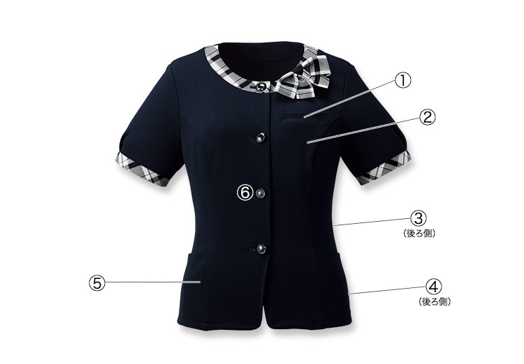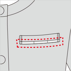 (名札専用テープ付き胸ポケット)アクセントのような黒テープは三分割仕様。値札とペン差しの位置を選べます。