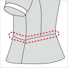 背面のウエスト切り替えをラウンドラインに。裾をフレアにして、更にエレガント。
