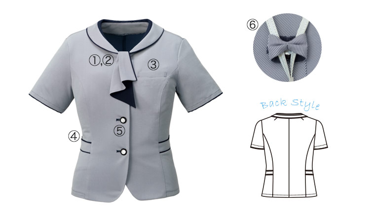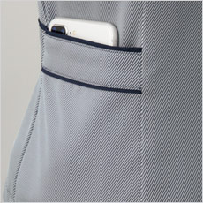 - 肩パッドなし、胸のポケットインク染み出し防止生地使用、名札ポケット、ホルダーループ付き、生地厚2
