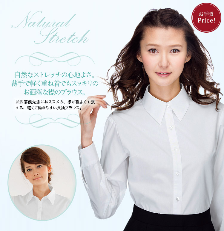 ナチュラルストレッチで動きやすく、リーズナブルな長袖ブラウス