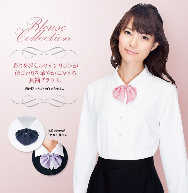 【在庫限り】[通年]サテンリボンが可愛く華やかな長袖ブラウス(76-FB75541)
