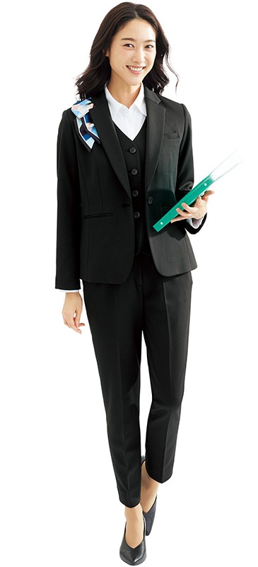 - 左胸ポケット(インク染み出し防止生地使用、名札ポケット仕様)、左内ポケット、右襟裏リボンループ、背抜き、センターベント、生地厚2