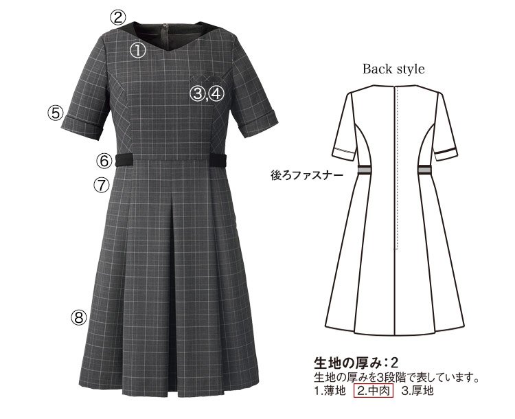 - 総裏、胸ポットのインク染み出し防止生地使用、名札ポケット、サイドポケット、後ろファスナー、生地厚2