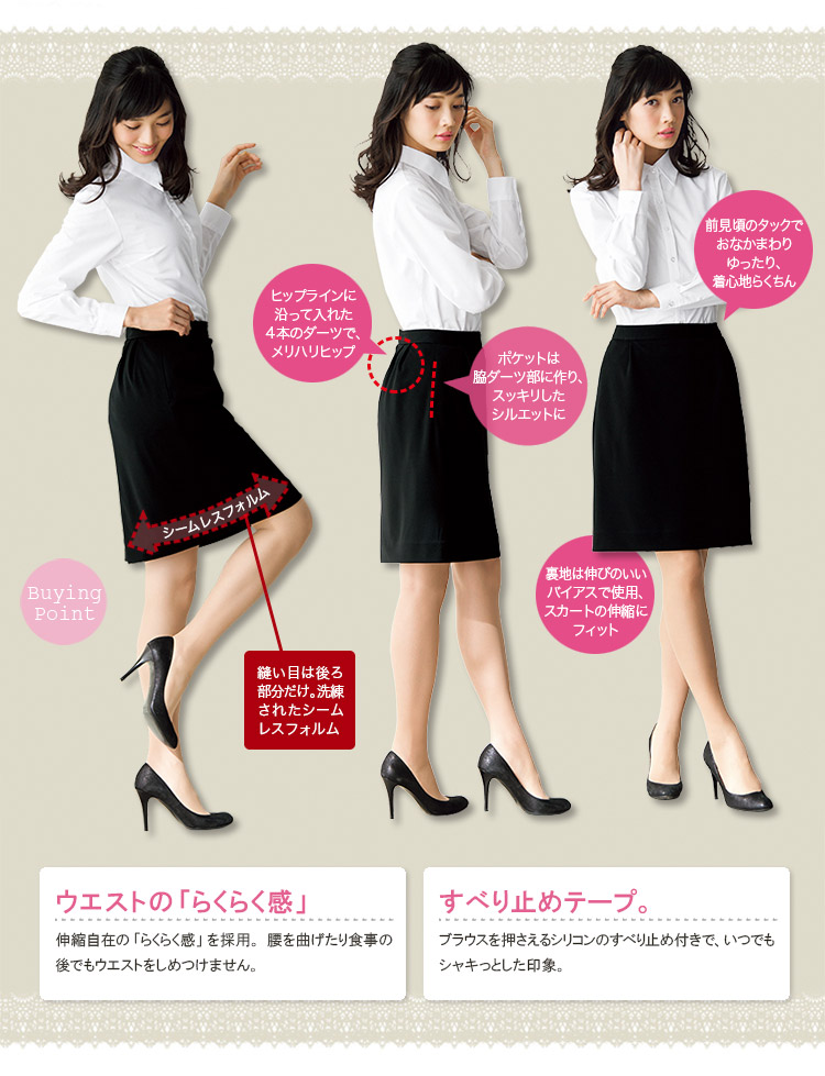 [通年]シワになりにくいニット素材!快適&美ラインのタイトスカート(76-FS45855)