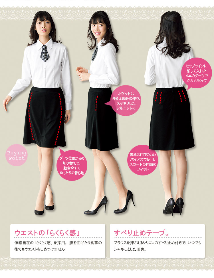 [通年]シワになりにくいニット素材!快適&美ラインのAラインスカート(76-FS45865)