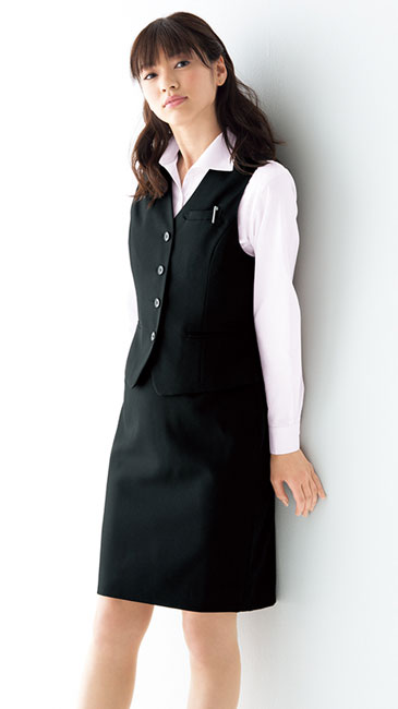 一般事務や銀行、JA、受付まで幅広い業界で使える汎用性の高いベスト&スカートセット!