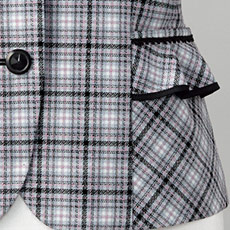 フェミニンな格子柄にポケットのフリルで大人仕様の可愛さを確保。花柄カッティングを施したボタンもおしゃれです。