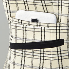 - インク漏れの染み出し防止生地、名札専用のミニポケット、両脇ポケット、スマホ用ポケット