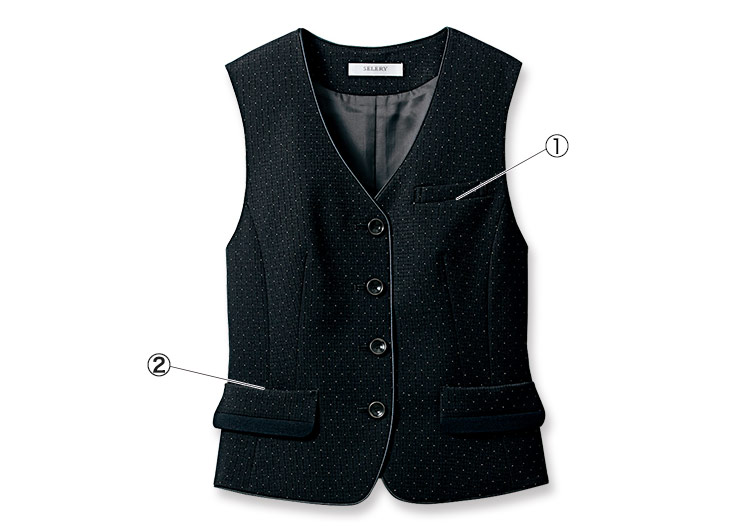 ネームホール・・・ポケットの型崩れ防止+ペンが沢山差せる、胸ポケットの内側に名札を簡単に差し込める仕様。