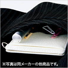 ダブルポケット・・・内側に付いた名刺サイズのポケットは、ハンコやクリップ等小物を小分けできて便利。