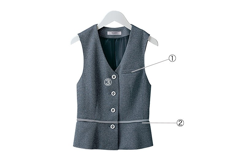 - 制電・ニット裏地、スタイルアップシルエット、背抜き仕立て、右腰ダブルポケット、ネームホール
