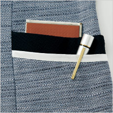 ポケットの型崩れ防止+ペンが沢山挿せる様、胸ポケットの外側に名札を簡単に差し込めるネームホールが付いています。