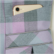 上品な杢グレーとトレンドカラーを組み合わせた華やかなチェック柄に卓越した色彩センスが光ります。
