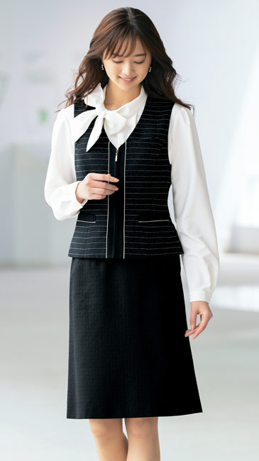 すっきりシャープなネックラインで、インナーブラウスなどの襟元アレンジが映える。