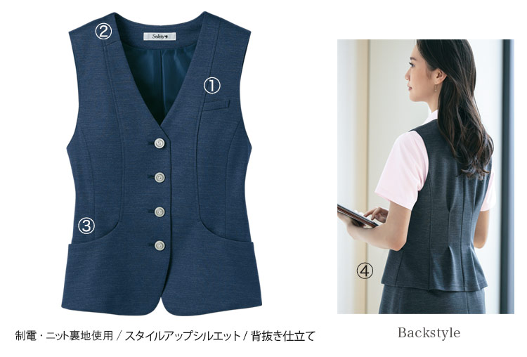 - アクセサリーホール、背抜き仕立て、制電・ニット裏地使用、スタイルアップシルエット