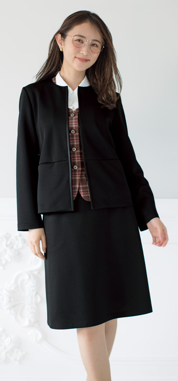 ワンランク上の品格を与えてくれるチェック柄のベスト。受付や一般事務、病院や医療事務まで幅広い業界で活躍します。抗菌・消臭・防汚・抗ウイルス機能付きでいつでも清潔に着られます。