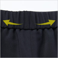 - 右腰ポケット、後ろウエストゴム、スタイルアップシルエット