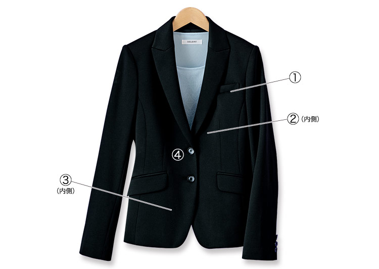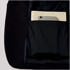 - スタイルアップシルエット、背抜き仕立て、内ポケット、リッチポケット、ネームホール