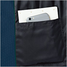 リッチポケット・・・メモ帳、ハンカチ、スマホ等が出し入れしやすい高さと深さ。底部分は縫い付け仕様で、重さでポケットが伸びる心配ゼロ。