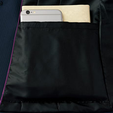 内ポケット・・・名刺入れや携帯電話がすっぽり入る深めの内ポケットは、仕事に役立つ便利仕様。
