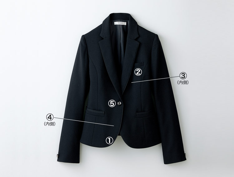 丸みを帯びたカッティングの前裾とパイピングが、柔らかさと高級感をかもします。