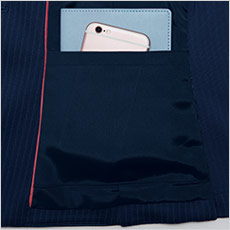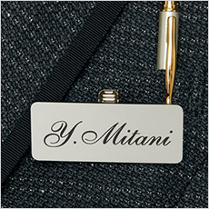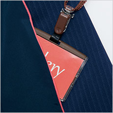 ポケットの型崩れ防止+ペンが沢山差せる様、胸ポケットの外側に名札を簡単に差し込めるネームホール。