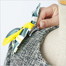 生地を傷めずにブローチやリボン等を留められる、アクセサリーホール。