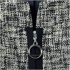 黒のパイピングにシルバーのファスナー飾りがスタイリッシュ。