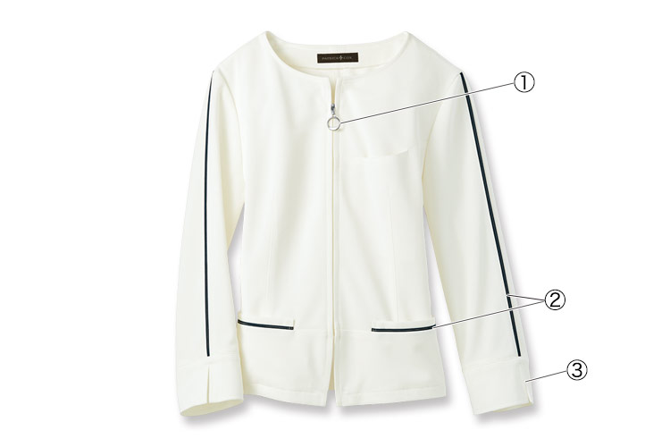 気品高く寄り添う事務服は、きちんと見える信頼スタイルと誠実感を印象づけ、