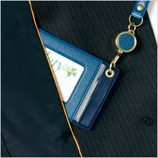 ポケットの型崩れ防止+ペンが沢山差せる様、胸ポケットの外側に名札を簡単に差し込めるネームホール。