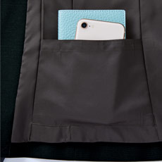 右腰に大きめの内ポケット付き。縫い付け仕様のため、重さでポケットが伸びる心配なし。