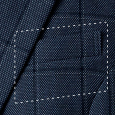 左襟のフラワーホールは、社章などのバッジを留めるポイントに。