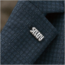 左襟のフラワーホールは、社章などのバッジを留めるポイントに。