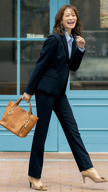 - 制電裏地使用、スタイルアップシルエット、内ポケット、リッチポケット