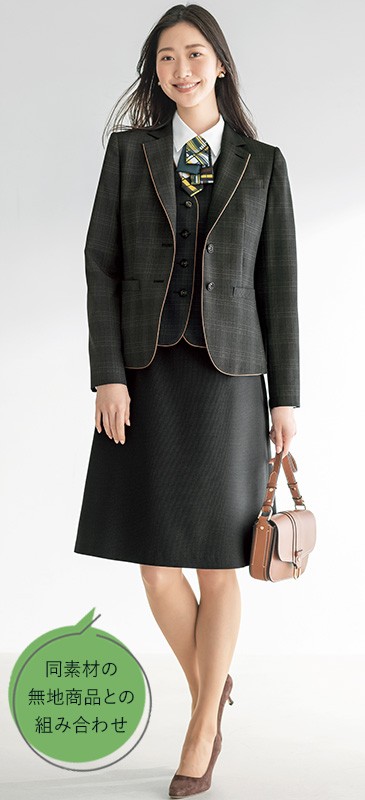 コーディネートの幅が広がるトラッドテイストのチェック柄ジャケットは、ウールのような高級感にふんわり心地よい素材感が魅力。印象の異なるカラーバリエーションは、幅広い職業におすすめです。