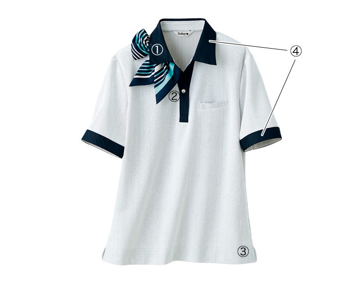 [春夏用]ポロシャツ[ニット/制菌/消臭/防汚/抗ウイルス/リボン付き](89-37071)