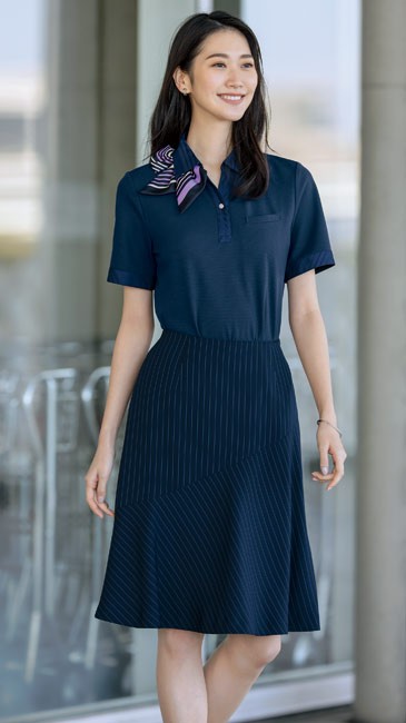 今までの事務服はベストでしたが、お腹周りが気になって、初めてポロシャツにしてみました。