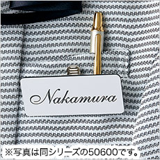 ポケットの型崩れ防止+ペンが沢山挿せる様、胸ポケットの外側に名札を簡単に差し込めるネームホルダーが付いています。