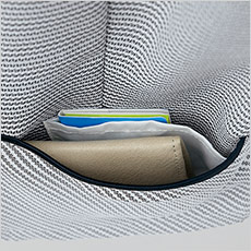 腰ダブルポケット/名刺サイズのポケットが内側についていて、ハンコやクリップ等小物を小分けできて便利です。