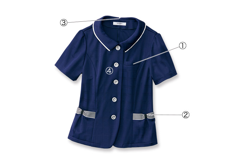 ポケットの型崩れ防止+ペンが沢山挿せる様、胸ポケットの外側に名札を簡単に差し込めるネームホルダーが付いています。