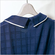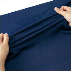 清涼感のあるチェック柄生地は、薄地でも優れたUVカット性を発揮し、防シワの他、通気性や速乾性も◎。