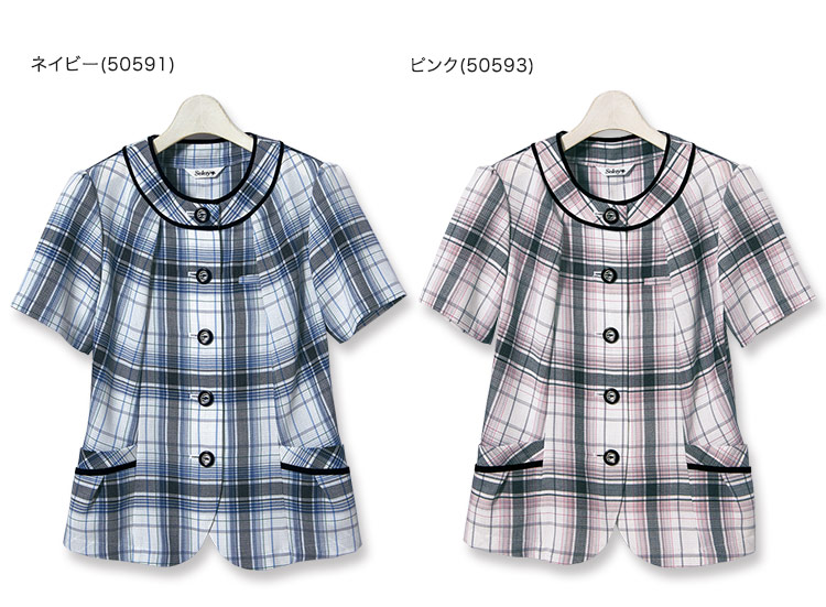 【在庫限り】[春夏用]軽くて涼しい、高級感のあるチェック柄オーバーブラウス(89-50591)