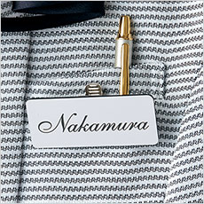 ポケットの型崩れ防止+ペンが沢山挿せる様、胸ポケットの外側に名札を簡単に差し込めるネームホルダーが付いています。