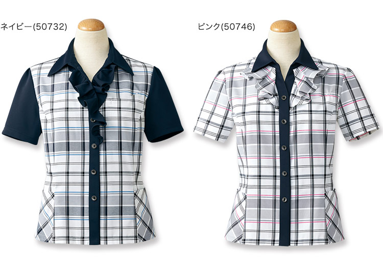 夏の日差しの中で印象的に映える、白地にくっきり交わる綿混のチェック柄。サックスは清涼感があり、ピンクは可愛らしさを演出します。