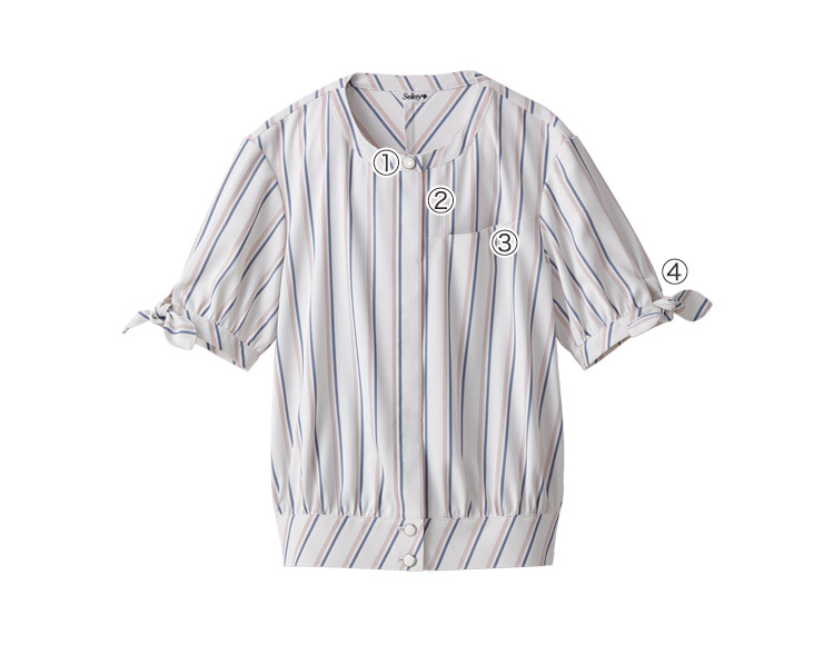 【在庫限り】[春夏用]オーバーブラウス[ストライプ/ストレッチ](89-50871)