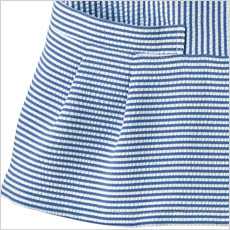 波状のシマ模様が生み出す凹凸感か小気味よいストレッチ素材です。肌に触れる面が少ないため、さらりとした肌ざわりと清涼感のある触感をもたらします。
