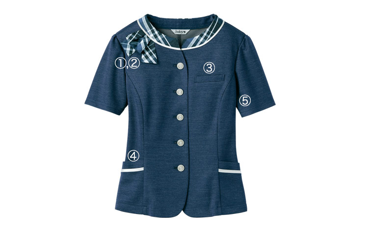- 両腰二重ポケット、汗脇パッド、胸ポケット ※リボンは縫い付け仕様です