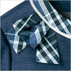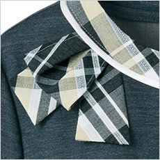 リボンは縫い付け仕様なので紛失の心配もなく、型崩れや位置のばらつきも解消し、いつもキレイを保てます。(ネイビーの襟元)