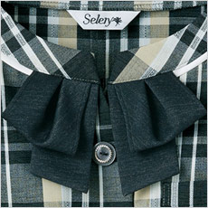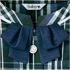 リボンは縫い付け仕様なので紛失の心配もなく、型崩れや位置のばらつきも解消し、いつもキレイを保てます。(ネイビーの襟元)